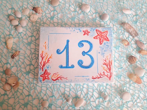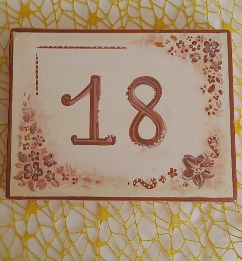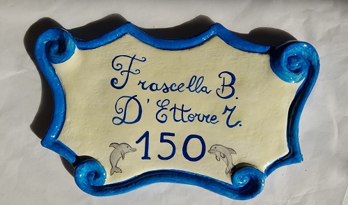 Proponiamo un originale Numero Civico, fuoriporta, in ceramica realizzata e decorato a mano, ma soprattutto personalizzato in base alle Vostre esigenze.